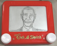 Taking it to the next level, the able-fingered Etchasketchist twisted and turned to produce a portrait of Obama on an etch-a-sketch.